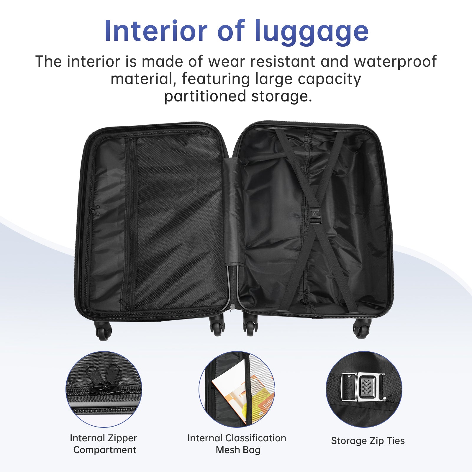 【High Quality Material】This 3-piece hardside luggage set is crafted from 100% ABS material, known for its strength, durability, and lightweight properties. The sturdy ergonomic aluminum telescopic handle can be adjusted to different lengths, providing optimal comfort for users of various heights.