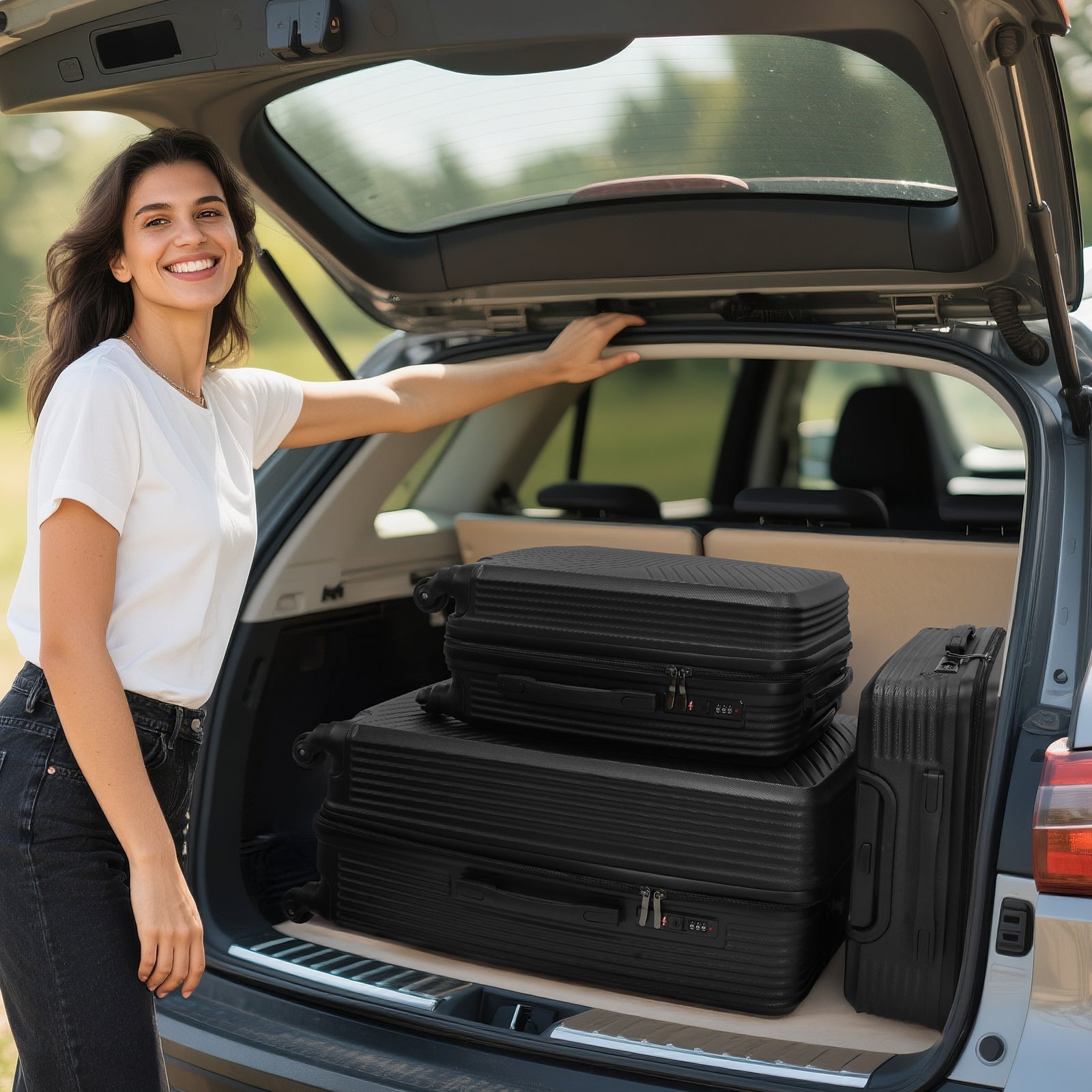 【Practical Design】This 3-piece hardside luggage set is designed for durability and convenience, featuring top-quality materials and thoughtful design elements. The textured finish is both fashionable and scratch-resistant, ensuring that your luggage remains in excellent condition after every trip.
