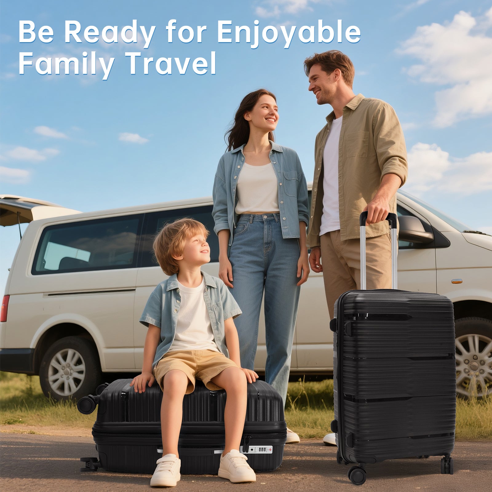 【5 Piece Set】Babyqueen luggage set includes a 7" carry-on handbag, a 20" carry-on luggage, a 24" luggage, and a 28" large suitcases. This set is lightweight, weighing only 26 lb. It is an ideal option for long distance trips and business journeys.