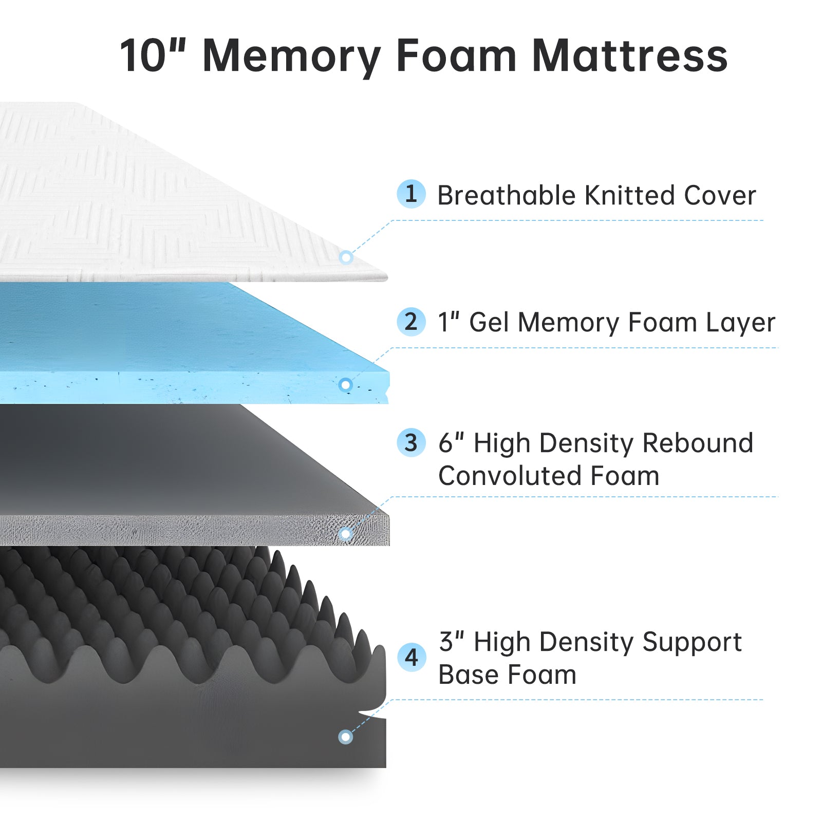 - Breathable and Comfortable: With free airflow between memory foam and internal gel particles keeping the mattress cool around the clock, the cool gel memory foam contours to your body for a cooler, sweeter sleep.