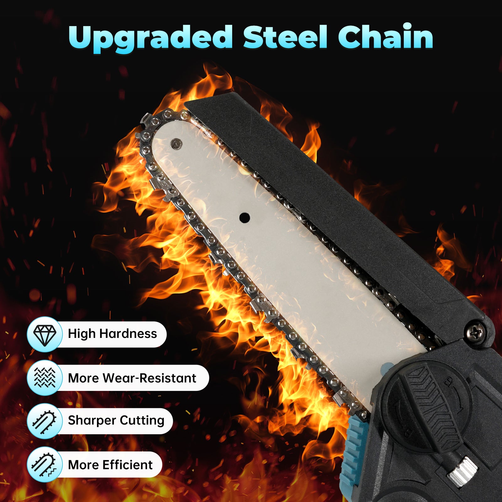 Vipsafe 6 inch Mini Chainsaw Cordless with 2 Batteries 2 Chain, Electric Chainsaw for Cutting Gardening, Wood Cutting & DIY, Blue